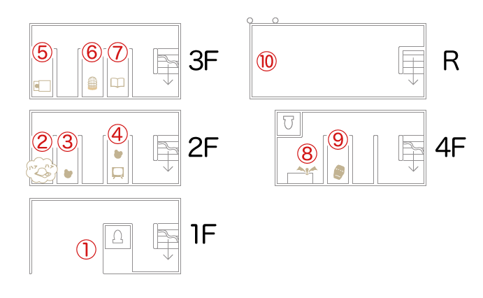 各部屋には様々な住民(?)がいるが必ず会えるわけではない。